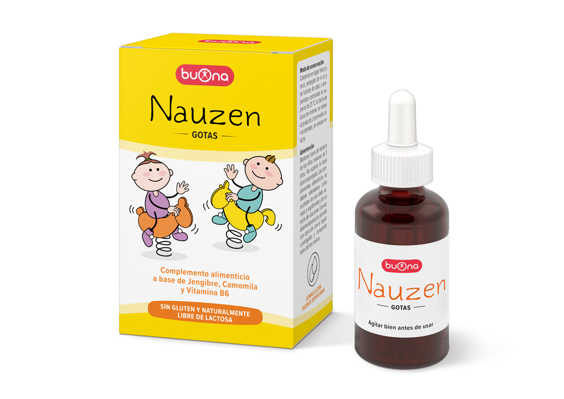 Nauzen gotas es un complemento alimenticio a base de Jenjibre, Manzanilla y Vitamina B6.